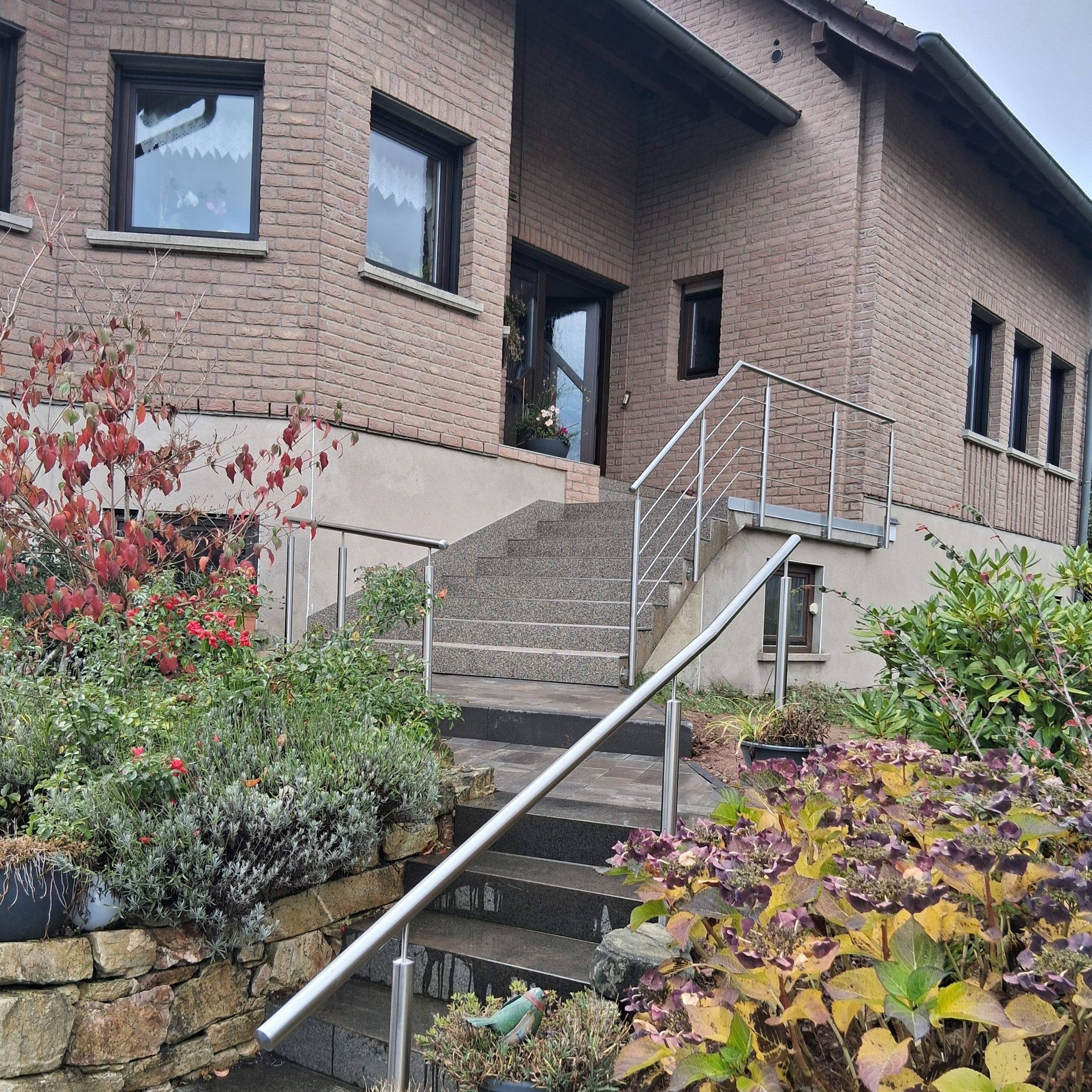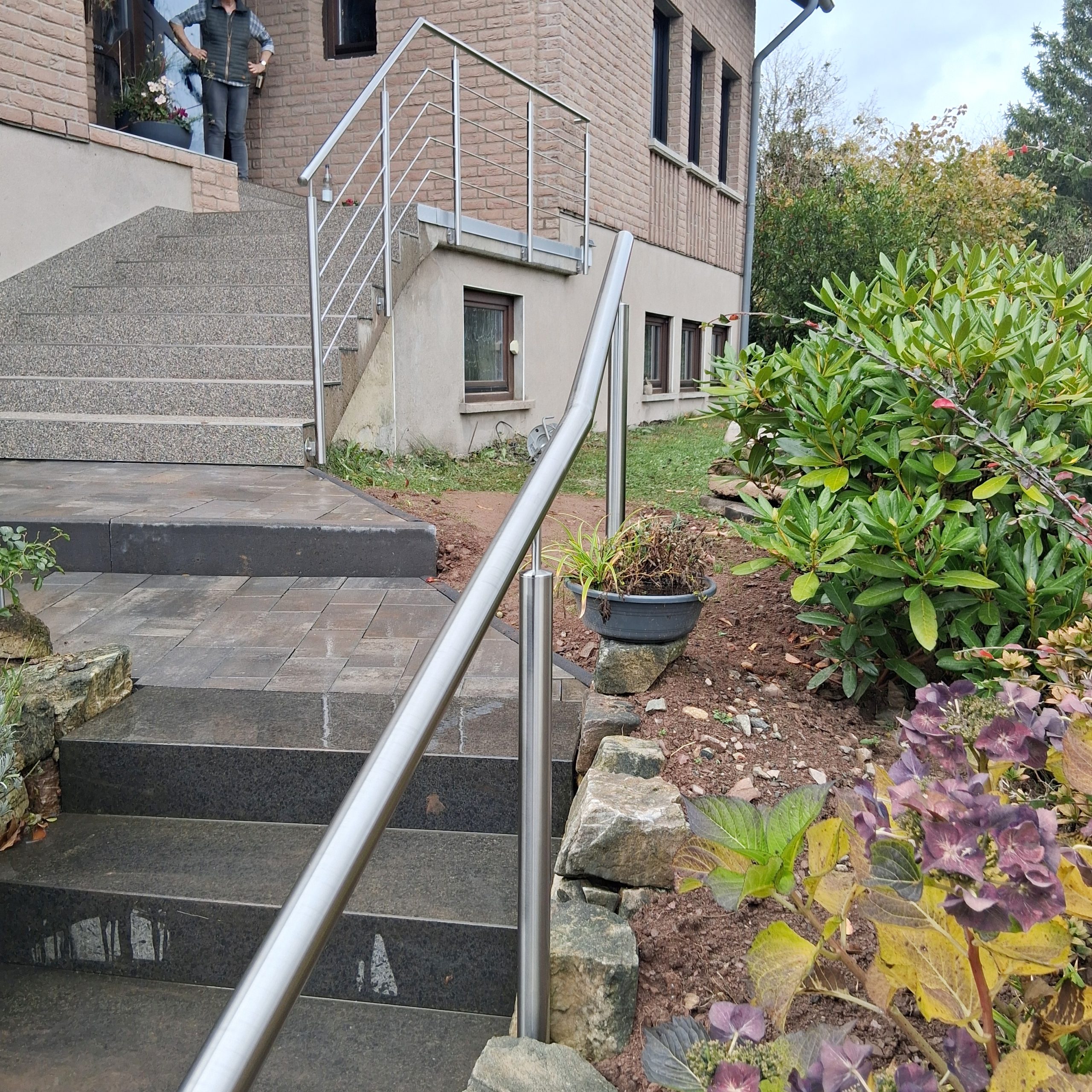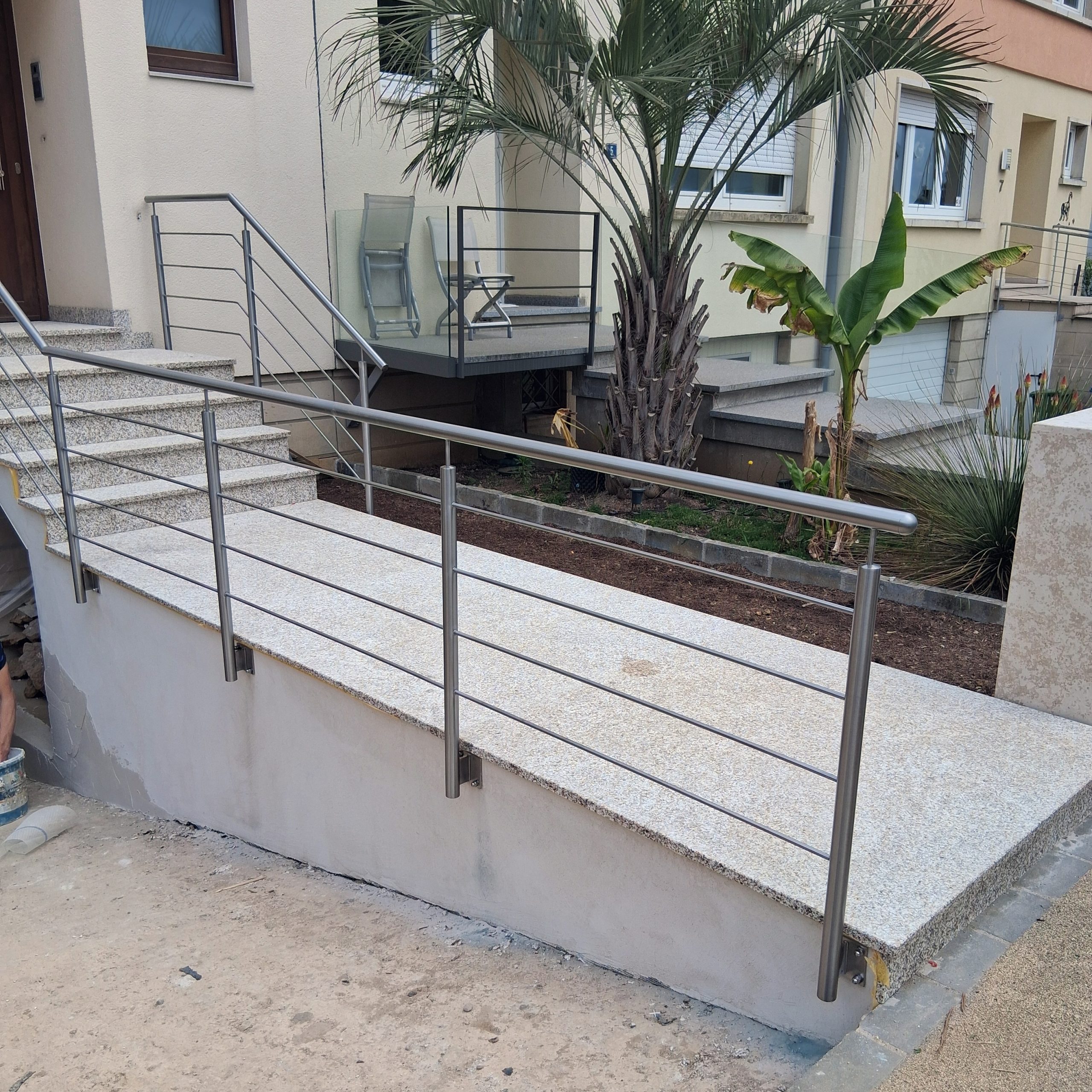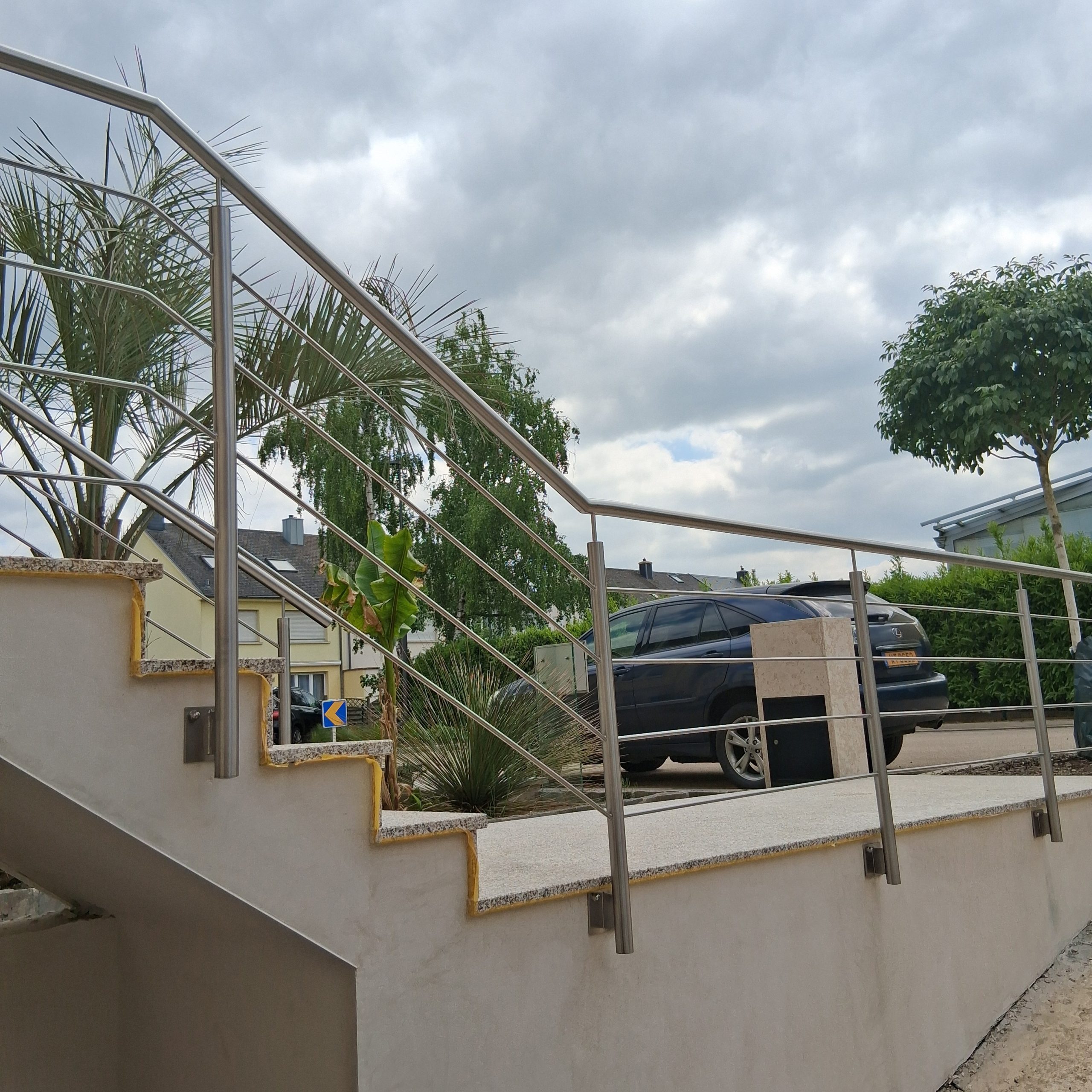 Edelstahlgeländer 7 Meter Vordach Stahltreppe Langlebige Designertreppe Absturzsicherung - Französicher Balkon Treppengeländer 9 Meter Massgefertigte Tische Unser Einsatzgebiet Wir arbeiten rund um Farschweiler bis ca 50 km. Edelstahlgeländer 7 Meter Treppen und Geländer Balkon